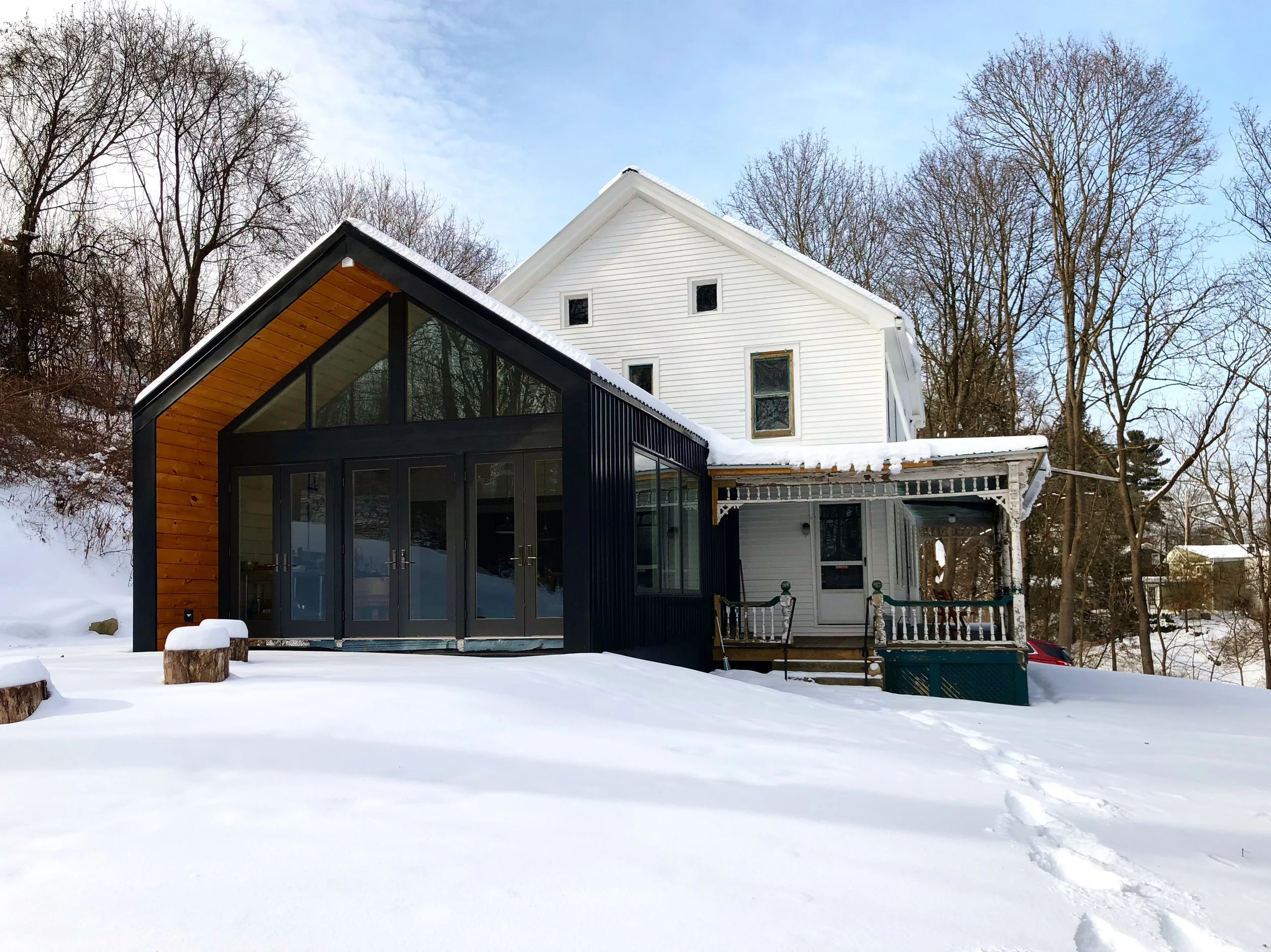 Situated on the Hudson River, the Church Street property is a four-bedroom house originally constructed around 1865. This project encompasses a renovation of the main house and a kitchen/ dining room addition that pays homage to the form of the original structure and roof pitch. The original house is in white, the addition is in black, celebrating the historic similarities and differences simultaneously.